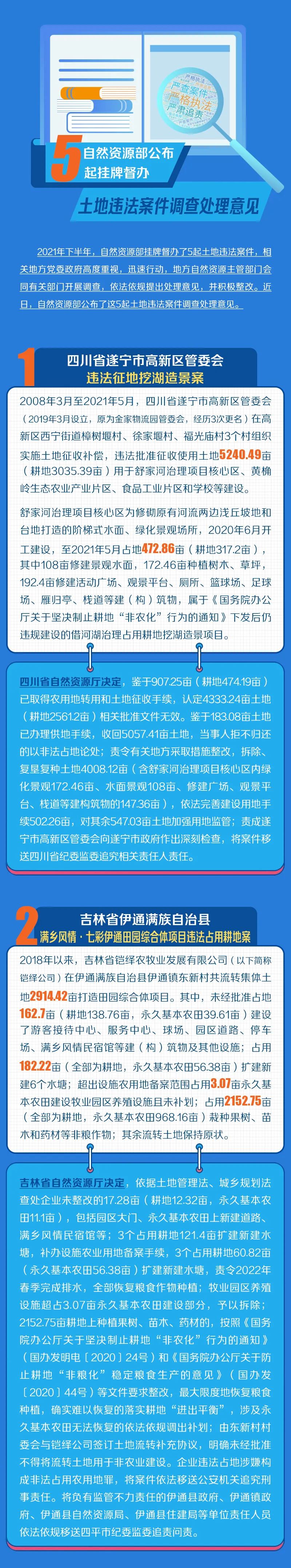 自然资源部公布5起挂牌督办土地违法案件调查处理意见