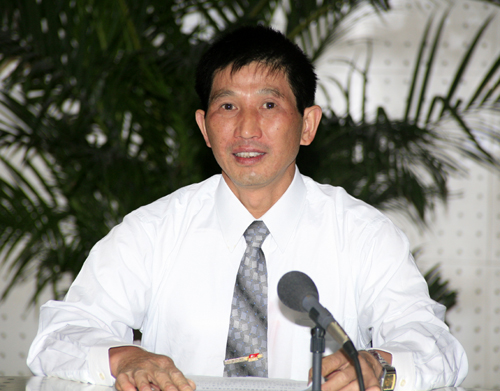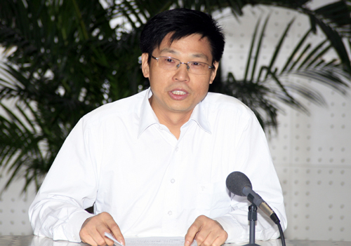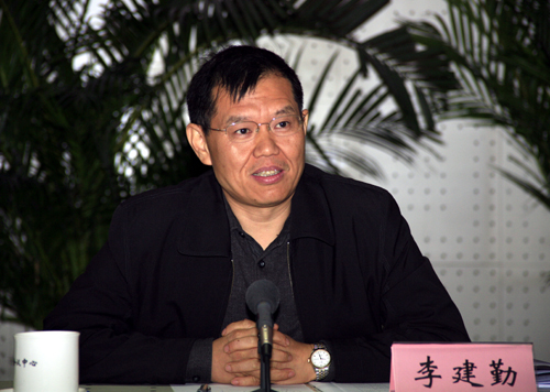 国土资源部执法监察局局长李建勤主持会议。 (杨征 摄 于洪奇编)