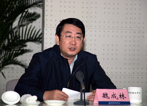 北京市国土资源局党组书记、局长魏成林致辞。 (杨征 摄 于洪奇编)