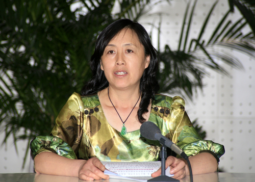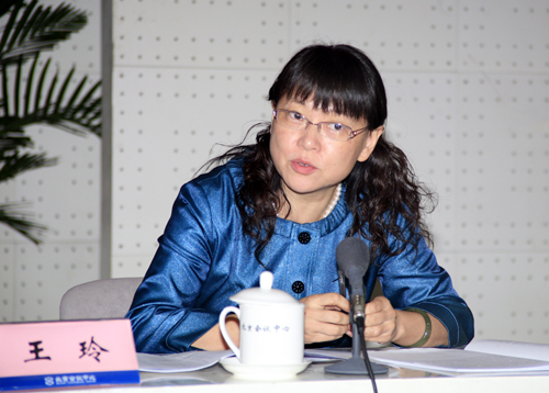 会议典型经验介绍阶段,国土资源部执法监察局副局长王玲主持会议。(杨征 摄 于洪奇编)