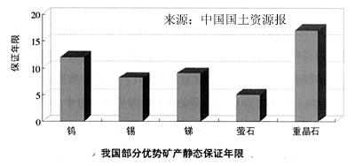 资料显示,我国优势矿产的查明资源利用程度高于短缺矿产,资源利用程度与市场配置资源原则之间存在诸多矛盾与问题。因短期利益而对优势资源进行的超强度开发,导致部分优势矿产资源储量利用程度过高,后备资源严重不足,资源优势地位岌岌可危。我国钨矿、锑矿、锡矿、萤石、重晶石、石墨、滑石等传统优势矿产,整体查明资源储量的服务年限都在10年左右。同时,过度和无序地开发利用所形成的超大产能和产量又远远超过了市场需求,供应严重过剩,不仅没能正常发挥资源效益,取得相应经济利益,而且带来了严重的环境负效益。短缺矿产资源供需形势严峻与呆滞查明资源储量过多的状况并存,以铁矿、铜矿、铝土矿为代表的大宗短缺矿产,查明资源储量利用程度低,与严峻的供需形势形成了鲜明对比。