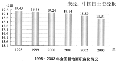 我国土地资源总量丰富但人均贫乏。根据国土资源部公布的数据,我国耕地、林地、牧草地总量2004年分别高达12244.43万公顷、23504.7万公顷和26270.68万公顷,分列世界第4位、5位和2位,但人均分别约为当前世界平均水平的38%、31%和35%。以耕地为例,我国一直以不到世界10%耕地养活世界22%的人口。从1996年到2004年,全国耕地面积由19.51亿亩减至18.37亿亩,是世界上耕地资源消耗速度最快的国家之一。而随着人口不断增加,我国人均耕地面积迅速下降。