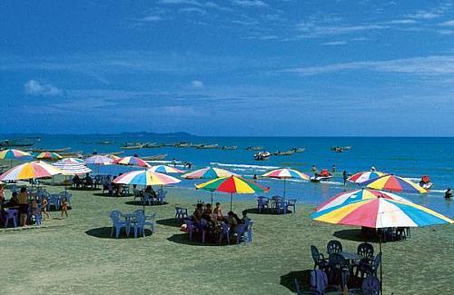 万尾金滩上风平浪静,宜于玩海,远处水天一色,舟帆点点,大可入画,岸边有长达数十公里的环岛大堤,沿堤遍植林木,漫步林中,清爽宜人,别有情趣!