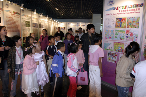 “认识地球、和谐发展”国际地球年中国少年儿童绘画展现场。
