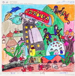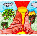 儿童绘画作品:奇妙的火山、 喷发的岩浆