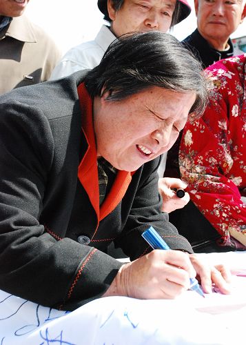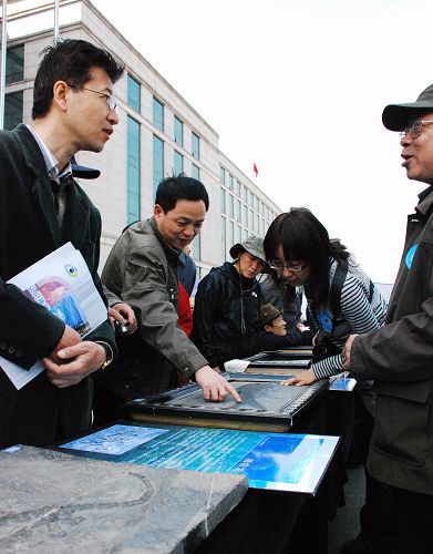 2009年4月22日是第40个“世界地球日”。国土资源部隆重举行“认识地球,保障发展——了解我们的家园深部”主题宣传活动。图为参观者在宣传活动现场签名表示支持。中国政府网 康丽琳 摄
