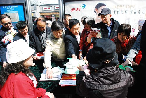 2009年4月22日是第40个“世界地球日”。国土资源部隆重举行“认识地球,保障发展——了解我们的家园深部”主题宣传活动。图为参观者踊跃领取宣传资料。中国政府网 康丽琳 摄