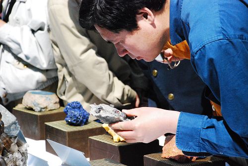 2009年4月22日是第40个“世界地球日”。国土资源部隆重举行“认识地球,保障发展——了解我们的家园深部”主题宣传活动。图为参观者认真观看矿石展览。中国政府网 康丽琳 摄