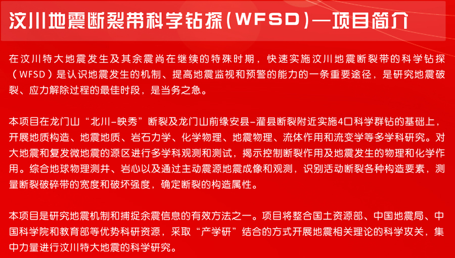 汶川地震断裂带科学钻探(WFSD)-项目简介