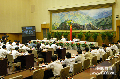 会议现场:2007年6月22日上午10时,第二次全国土地调查工作电视电话会议在国务院小礼堂召开,中共中央政治局委员、国务院副总理曾培炎出席会议并发表重要讲话。